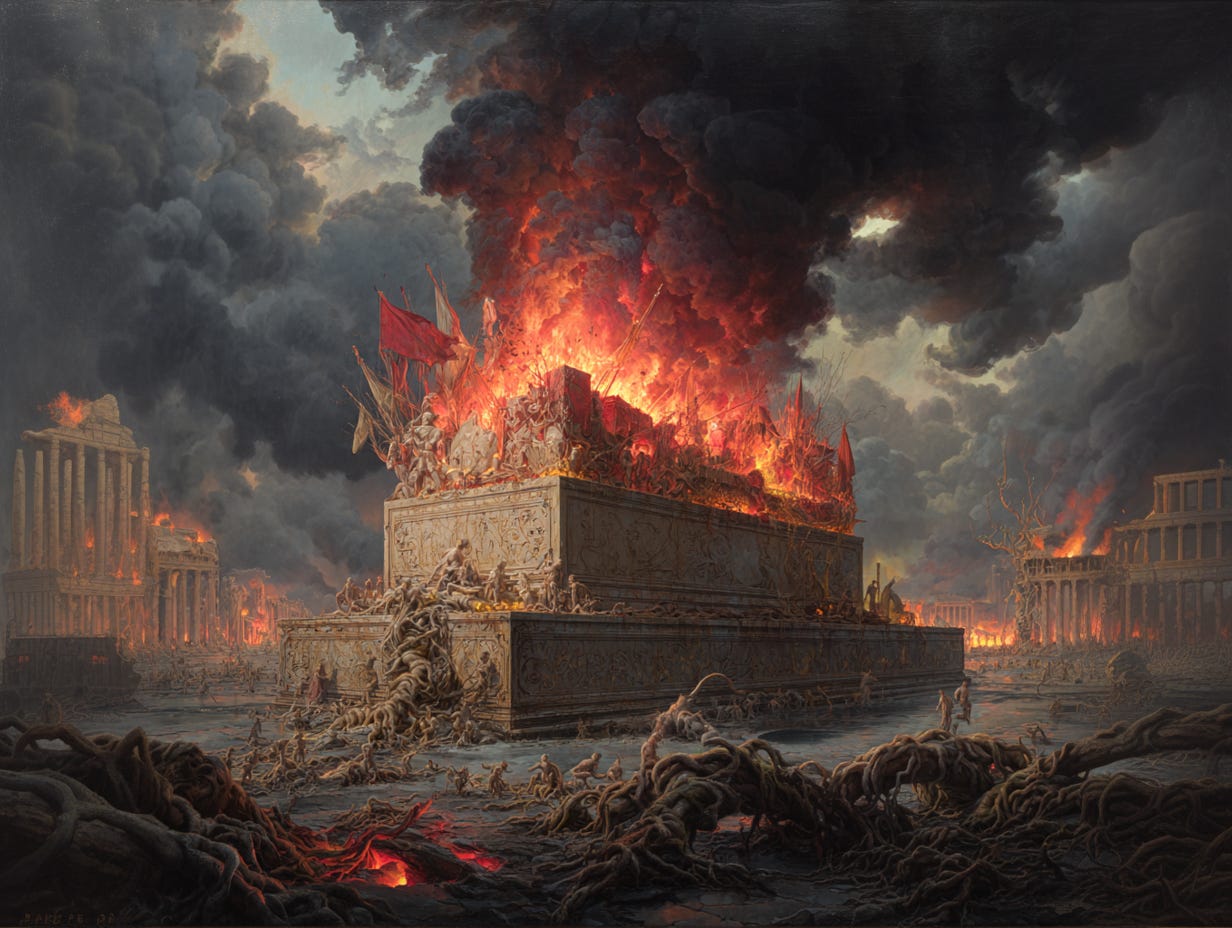 Assimilation mistook force for unity. The flames snap its spine clean.