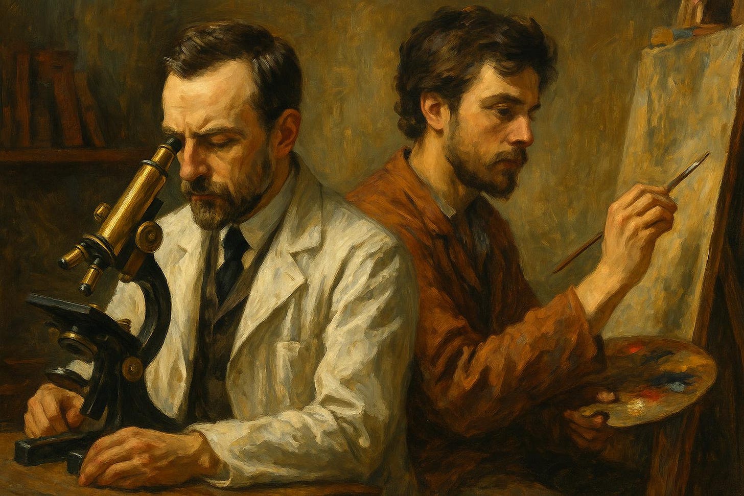 Whether scientists and artists exist in separate worlds, indifferent to one another, or even regard each other with hostility, this may not be particularly significant. It would hardly pose an active impediment to the development of science or art, respectively. Yet, viewed from the standpoint of a third party detached from these two worlds, these two classes appear to be surprisingly close, like blood relatives.