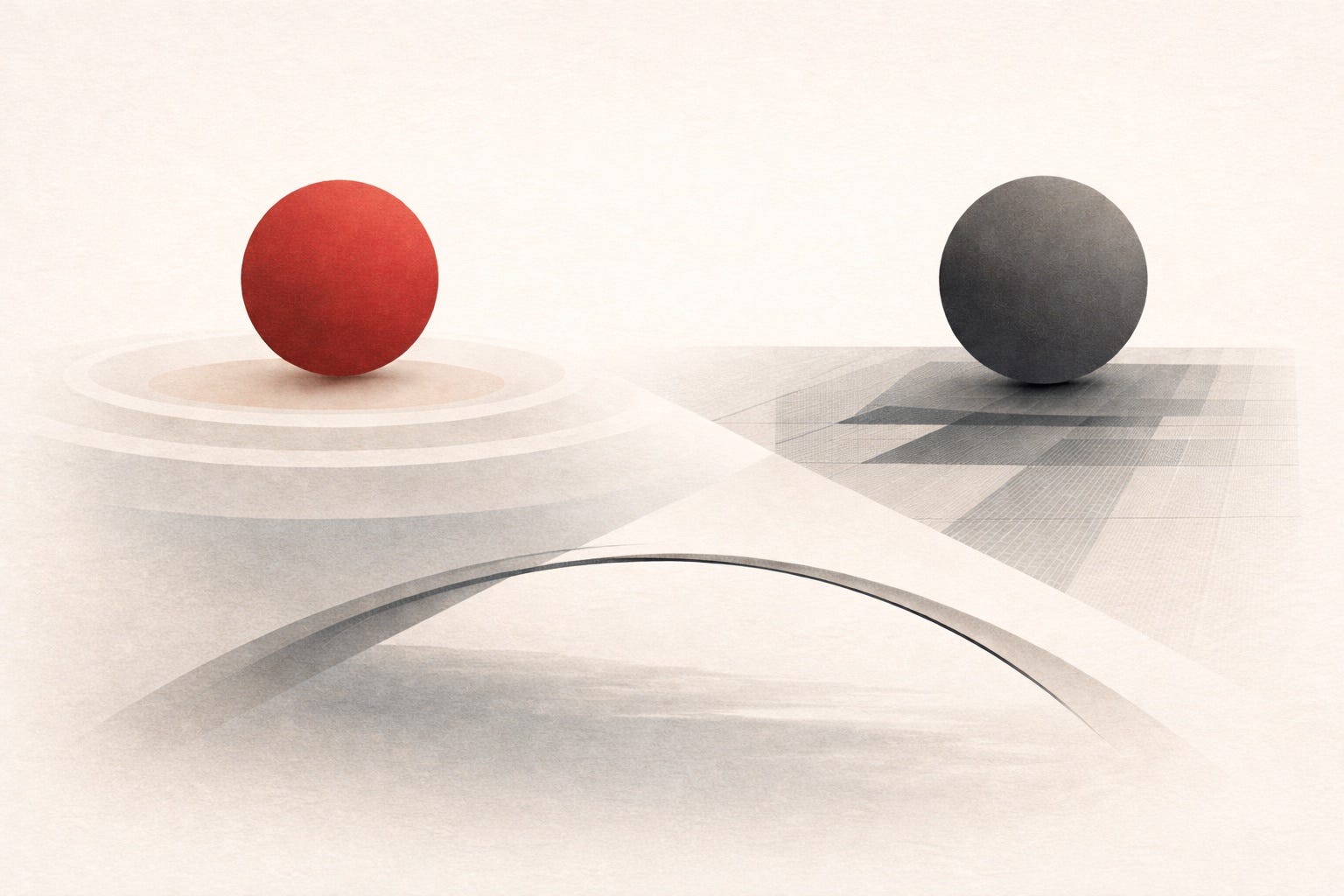 Thus, while the Western self is constituted through difference from others, the Japanese self is constituted through its relationship with space. In the West, possessing a theory serves as proof of the self; in Japan, correctly positioning a theory within space is the condition for the self’s establishment. When the same linguistic expressions are used without awareness of this difference, they can inadvertently signal hostility or exclusion. From a Japanese perspective, the ontological friction between East and West does not lie in opposing claims, but in a deeper difference in cognitive orientation: whether meaning is structured through spatial relations or through the separation of objects.